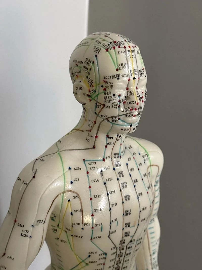 Acupuncture consists of the gentle insertion and stimulation of thin, disposable sterile needles at strategic points near the surface of the body. Over 2,000 acupuncture points on the human body connect with 14 major pathways, called meridians. These meridians conduct Qi (life-force or energy), between the surface of the body and internal organs.